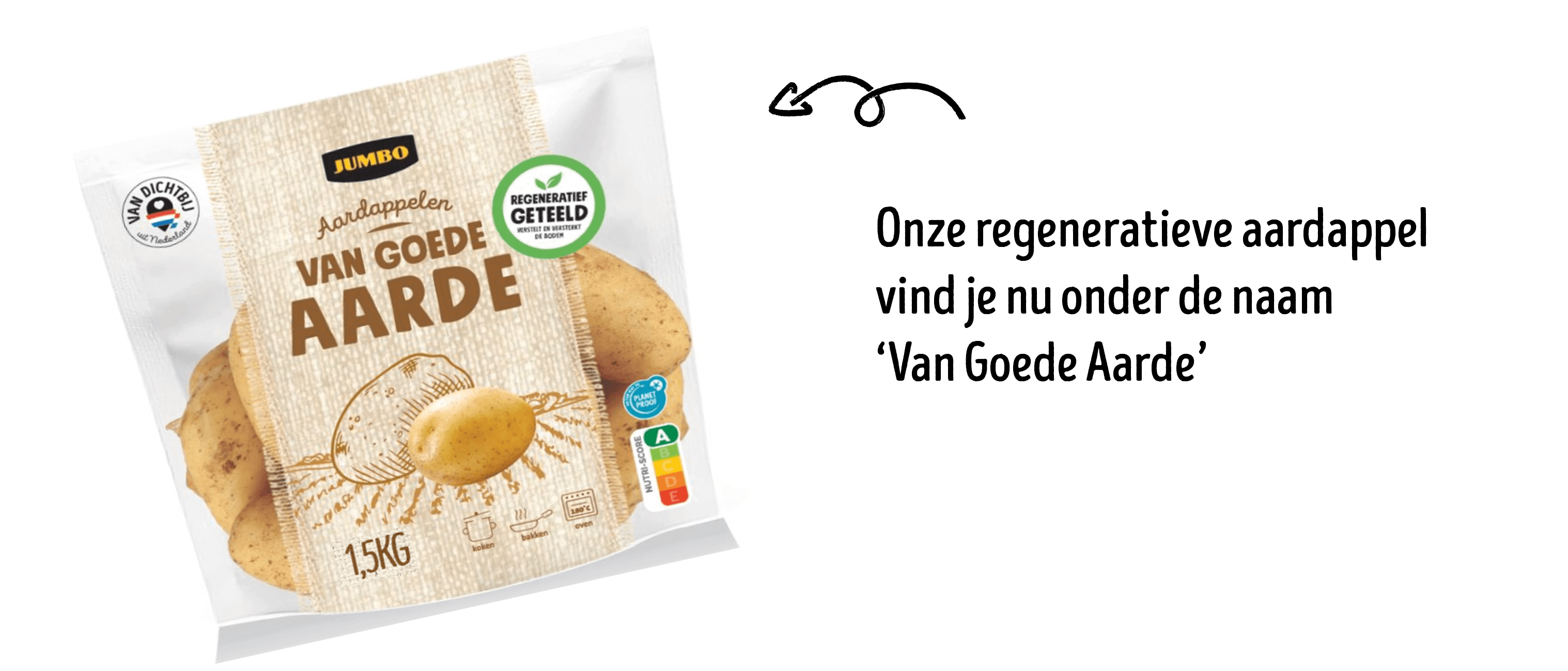In 2025 breidden we ons regeneratieve assortiment uit met aardappelen van Nederlandse bodem, onder onze nieuwe AGF-productlijn Van Goede Aarde.