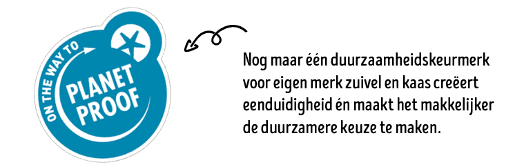 Jumbo maakte in 2025 bekend voor de toekomst te kiezen voor één duurzaamheidskeurmerk voor al haar eigen merk zuivel- en Nederlandse kaas: On the way to PlanetProof. Met deze keuze willen we klanten meer duidelijkheid bieden en hen helpen bij het maken van een duurzamere keuze.