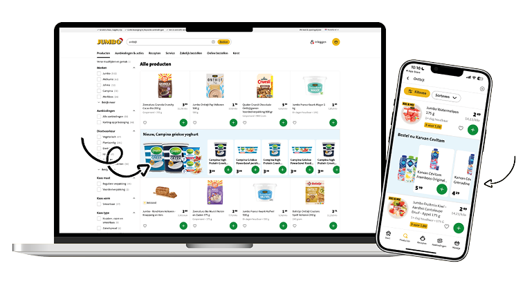 Jumbo behoort volgens het Webwinkel Toegankelijkheidsonderzoek 2025 tot de meest toegankelijke webwinkels van Nederland, met een score van 83 (van de 100) punten en de mogelijkheid om het volledige bestelproces zonder muis te doorlopen. Daarmee laten we zien dat digitale inclusie geen verplichting is, maar een kans om iedereen welkom te heten in onze online winkel. Sinds de eerste meting hebben we een sprong van 28 punten gemaakt.