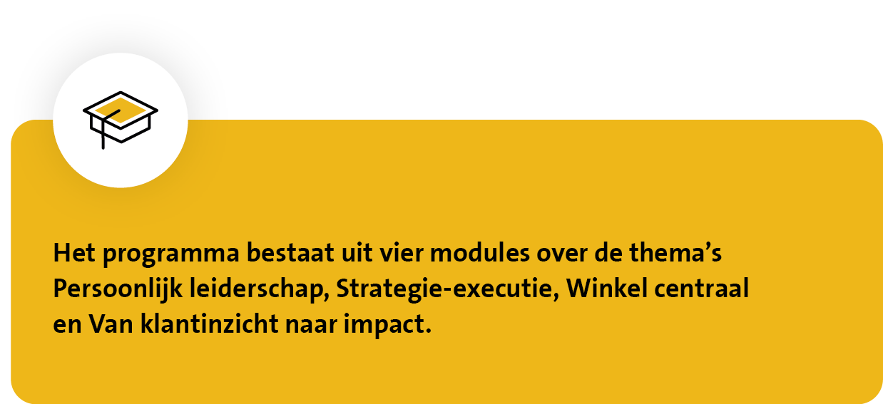 Erik: “Het leiderschapsprogramma had een mooie balans tussen theorie en praktijk. We hebben bijvoorbeeld een speciale sessie met filiaalmanagers en ondernemers gehad. Daar lag de vraag op tafel: Wat ervaren jullie in de dagelijkse praktijk en met welke type leiderschap kunnen wij winkels daarin bijstaan? Zelf geef ik leiding aan een team van zo’n 75 mensen. Mijn collega’s zeggen dat ik sinds het programma meer vertrouwen en ruimte geef. De leiderschapsverandering die nu bij Jumbo plaatsvindt, is nog maar het begin. De wil is er om met z’n allen van Jumbo en nog beter bedrijf te maken.”