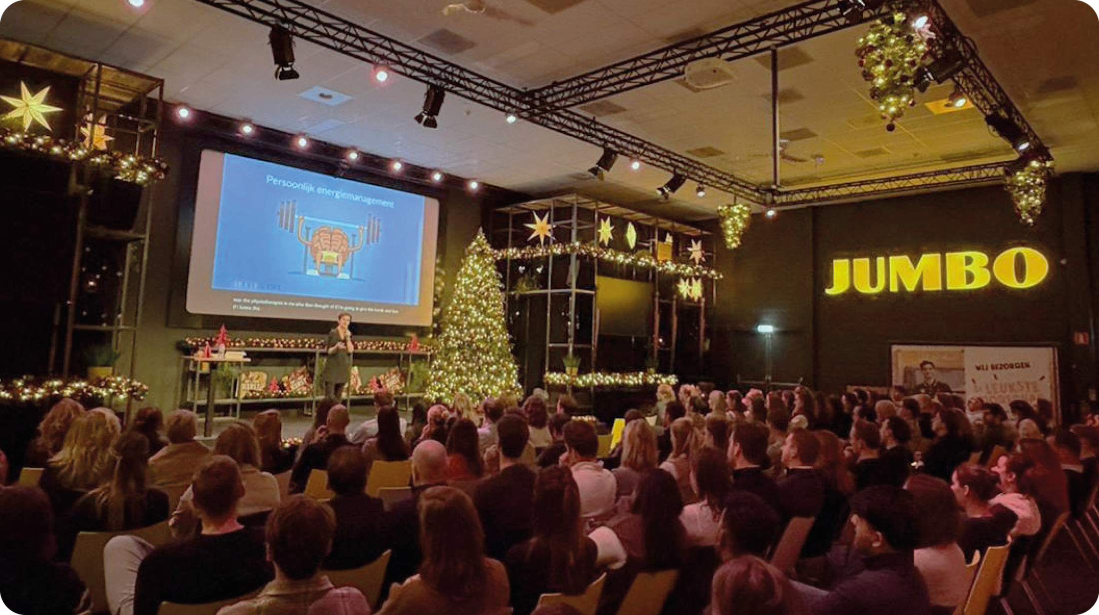 Om optimaal te kunnen samenwerken, ondernemen en winnen, moeten medewerkers zich ook blijven ontwikkelen. Daarvoor hebben we onder andere onze eigen Jumbo Academy, met een passend aanbod aan vaktrainingen en opleidingen. Als aanvulling daarop stond in mei ons kantoor in Veghel in het teken van leren en ontwikkelen tijdens de Week van de ontwikkeling. Tijdens deze week kregen alle kantoorcollega's een gevarieerd programma aan workshops aangeboden. Honderden collega’s investeerden in hun eigen ontwikkeling door deel te nemen aan één of meerdere workshops. Vanwege het succes in mei, stond ook de maand november in het teken van professionele en persoonlijke ontwikkeling. Want lekker werken kan alleen als collega's zich lekker voelen. Naast de vakinhoudelijke onderwerpen gaven we in deze maand extra aandacht aan de ontwikkeling van welzijn, zowel fysiek als mentaal.